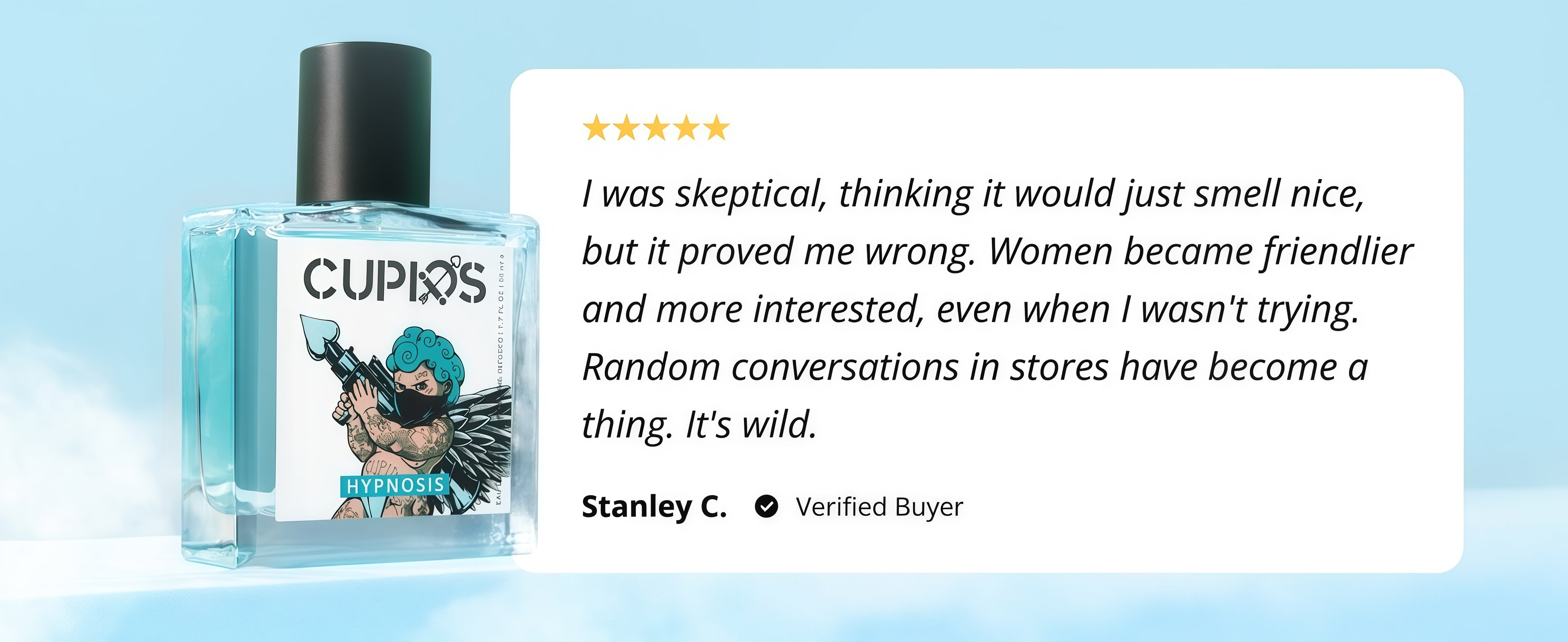 Your pheromone levels can hold you back from making a lasting impression. Cupids' formula, developed by scientists with 20+ years of experience, uses a powerful, science-backed blend to topically enhance your natural pheromones. Just a few sprays, and you'll feel more attractive and have more confidence to captivate those around you.